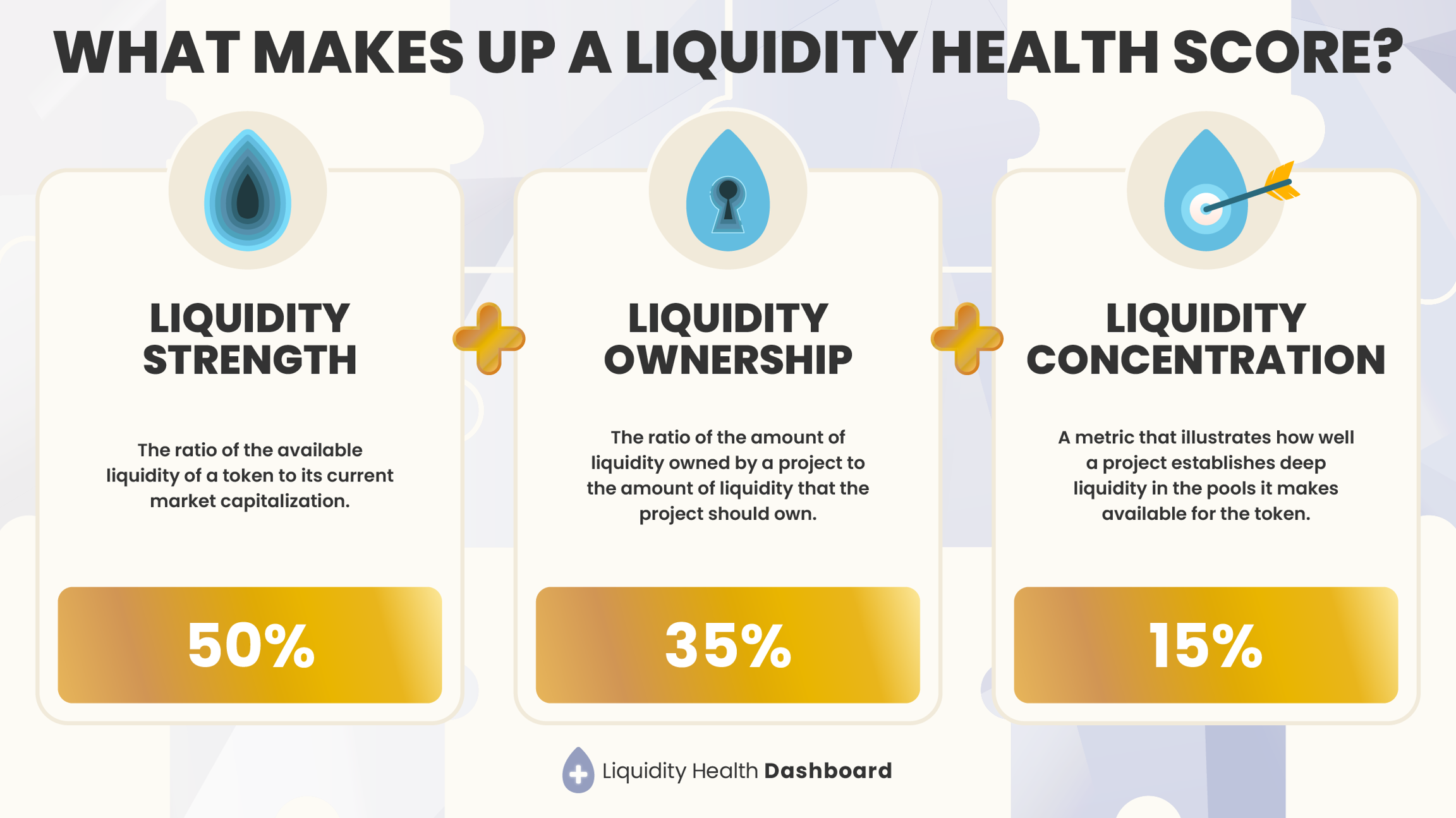 These three category scores are then weighted through ApeBondβs custom-built formula above to generate an aggregate Liquidity Health Score on a scale of 0-100. The Liquidity Health Score is the primary metric that will be shown when sharing information from the Liquidity Health Dashboard.